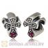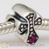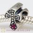European Antique Sterling Silver Cross Charm Bead with Light Siam Austrian Crystal