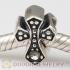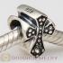 European Antique Sterling Silver Cross Charm Bead with Jet Austrian Crystal