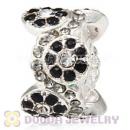 European Sterling Silver Daisy Bouquet Beads with Black and White Austrian Crystal
