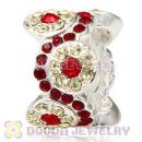 European Sterling Silver Daisy Bouquet Beads with Red and Jonquil Austrian Crystal