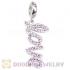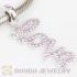European Sterling Silver Love Letters Dangle Beads with Light Rose Austrian Crystal