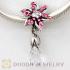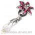 Sterling Silver Lily Briolette Dangle Beads with Pink Rose and Crystal Austrian Crystal