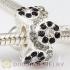 European Sterling Silver Daisy Bouquet Beads with Black and White Austrian Crystal
