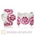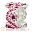 European Sterling Silver Daisy Bouquet Beads with Amethyst and Rose Austrian Crystal