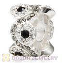 European Sterling Silver Daisy Bouquet Beads with Black and White Austrian Crystal