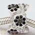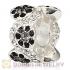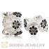 European Sterling Silver Daisy Bouquet Beads with Black and White Austrian Crystal