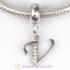 925 Sterling Silver Dangle Letter V Beads with CZ Stone