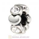 European Sterling Silver Heart Spacer Beads with Crystal Austrian Crystal