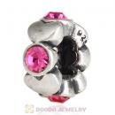 European Sterling Silver Heart Spacer Beads with Rose Austrian Crystal