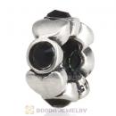 European Sterling Silver Heart Spacer Beads with Jet Austrian Crystal