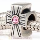 European Sterling Silver Cross Charm With Light Rose Austrian Crystal