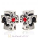 European Sterling Silver Cross Charm With Light Siam Austrian Crystal