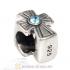 European Sterling Silver Cross Charm With Sapphire Austrian Crystal