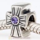 European Sterling Silver Cross Charm With Amethyst Austrian Crystal