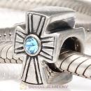 European Sterling Silver Cross Charm With Aquamarine Austrian Crystal