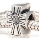 European Sterling Silver Cross Charm With Austrian Crystal Beads