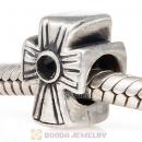 European Sterling Silver Cross Charm With Jet Austrian Crystal