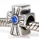 European Sterling Silver Cross Charm With Sapphire Austrian Crystal