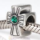 European Sterling Silver Cross Charm With Emerald Austrian Crystal