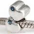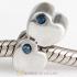 European Sterling Double Heart Charm with Blue Zircon Austrian Crystal Beads