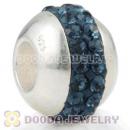 Authentic 925 Sterling Silver Beads with Blue Austrian crystal Inlaid