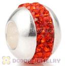 Authentic 925 Sterling Silver Beads with Hot Red Austrian crystal Inlaid