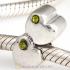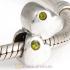 European Sterling Double Heart Charm with Peridot Austrian Crystal Beads