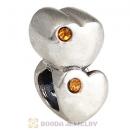 European Sterling Double Heart Charm with Light Colorado Topaz Austrian Crystal Beads