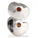 European Sterling Double Heart Charm with Light Colorado Topaz Austrian Crystal Beads