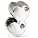 European Sterling Double Heart Charm With Austrian Crystal Beads