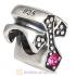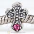 European Antique Sterling Silver Cross Charm Bead with Light Rose Austrian Crystal