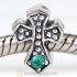 European Antique Sterling Silver Cross Charm Bead with Aquamarine Austrian Crystal