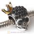 Gold Plated Crown Sterling Silver Skull Highness Bead with Black Diamond Austrian Crystal