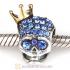 Gold Plated Crown Sterling Silver Skull Highness Bead with Aquamarine Austrian Crystal