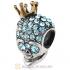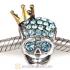 Gold Plated Crown Sterling Silver Skull Highness Bead with Sapphire Austrian Crystal