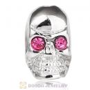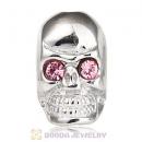 8×14mm Rhodium plated Sterling Silver Skull Head Bead with Light Rose Austrian Crystal