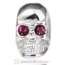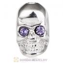 8×14mm Rhodium plated Sterling Silver Skull Head Bead with Amethyst Austrian Crystal