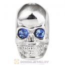 8×14mm Rhodium plated Sterling Silver Skull Head Bead with Tanzanite Austrian Crystal