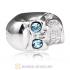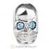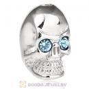 8×14mm Rhodium plated Sterling Silver Skull Head Bead with Sapphire Austrian Crystal