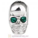 8×14mm Rhodium plated Sterling Silver Skull Head Bead with Emerald Austrian Crystal