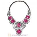 Luxury brand White Roseo Crystal Flower Statement Necklaces Wholesale