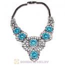 Luxury brand White Blue Crystal Flower Statement Necklaces Wholesale