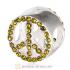 Sterling Silver Peace Button Beads with Peridot Austrian Crystal