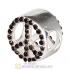 Sterling Silver Peace Button Beads with Black Diamond Austrian Crystal