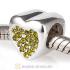 Sterling Silver Glitter Heart Beads with Emerald Austrian Crystal