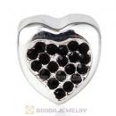 Sterling Silver Glitter Heart Beads with Crystal Austrian Crystal