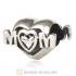 Sterling Silver European MOM Heart Bead with Black Diamond Austrian Crystal