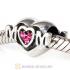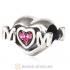 Sterling Silver European MOM Heart Bead with Fuchsia Austrian Crystal