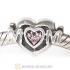 Sterling Silver European MOM Heart Bead with Violet Austrian Crystal