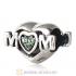 Sterling Silver European MOM Heart Bead with Black Diamond Austrian Crystal